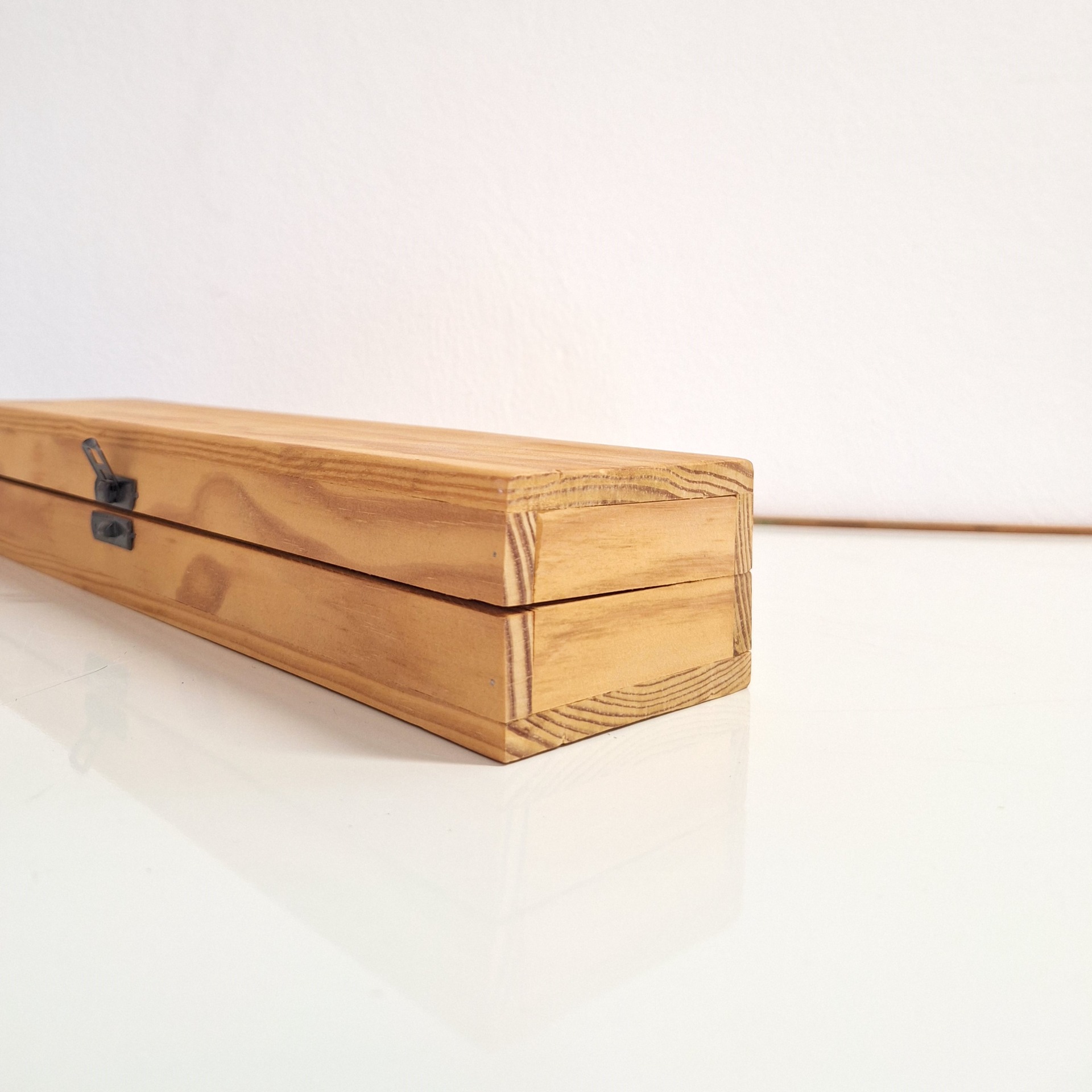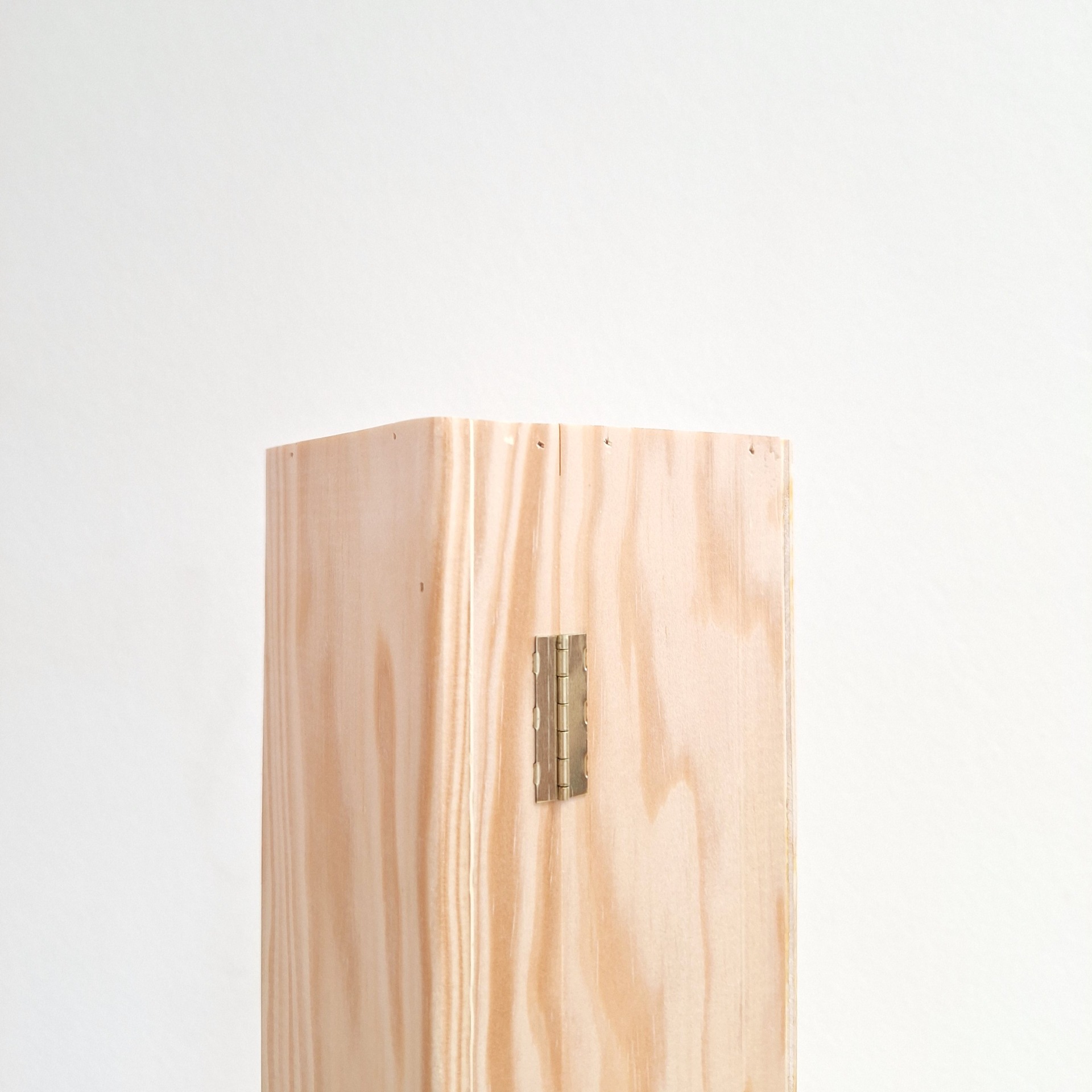 Dobradiças que ficam apenas visibel na abertura da caixa e funcionam inseridas no material do baú.