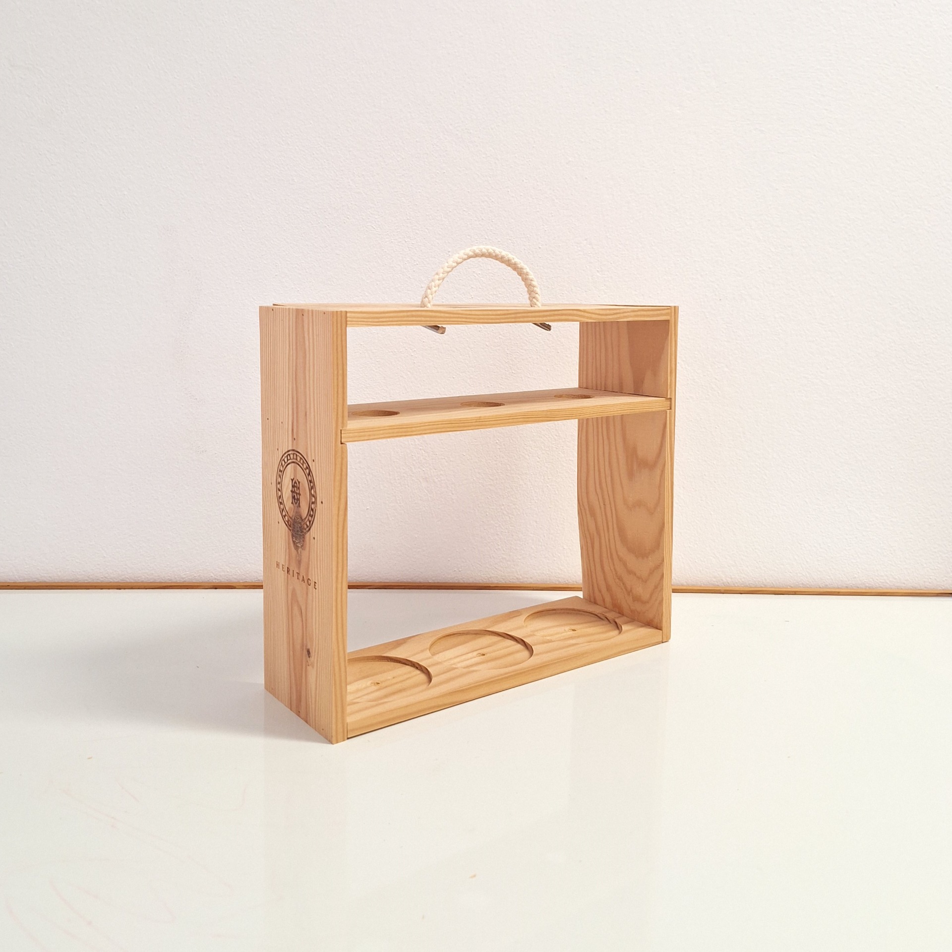 MDF com pouca espessura que é preparado para ser encaixado e colocado entre as garrafas
